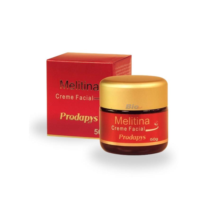 O creme facial de melitina do Prodapys (50 g) interage com o tecido cutâneo, fortalecendo a pele. O pólen apícola é uma fonte natural de aminoácidos essenciais e vitaminas. A vitamina E neutraliza a ação nociva dos radicais livres. O veneno de abelha possui um aminoácido chamado melitina que é conhecido como botox natural. Graças a sua ação que estimula a circulação sanguínea, aumentando a produção de colágeno e elastina, estimulando assim, a renovação celular, e o resultado é uma pele mais firme, lisa e livre de rugas. A textura é cremosa (espalha fácil), livre de corantes químicos, sua coloração provêm da cor do pólen e por este motivo, pode haver variação de tonalidades entre os lotes diferentes.